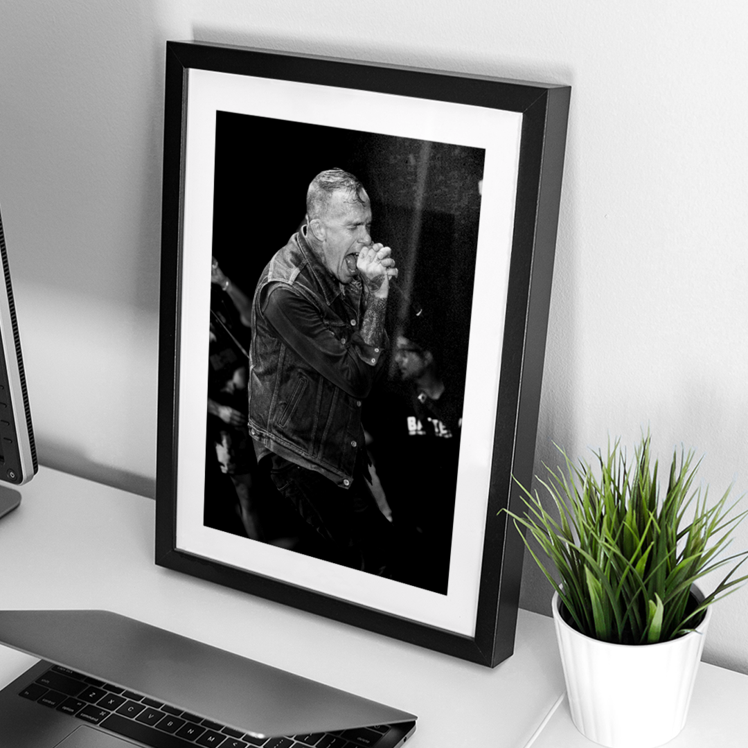 Impreso y enmarcado con acabados profesionales, esta fotografía captura la intensidad y crudeza de un show histórico, que selló la conexión indestructible entre Converge y su público chileno.