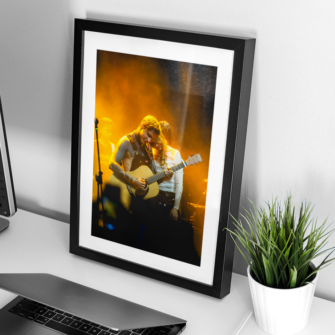 Impreso y enmarcado con acabados profesionales, este cuadro es una pieza imprescindible para fanáticos y coleccionistas de momentos icónicos de la música.