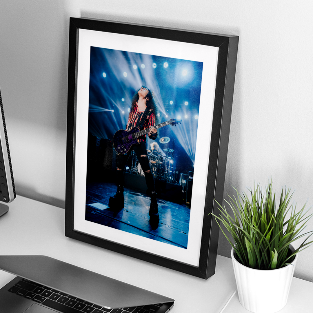 Impreso en alta definición y enmarcado con acabados profesionales, este retrato captura la esencia de una noche en que Marty Friedman demostró que la música instrumental puede ser tan emotiva y poderosa como cualquier palabra.