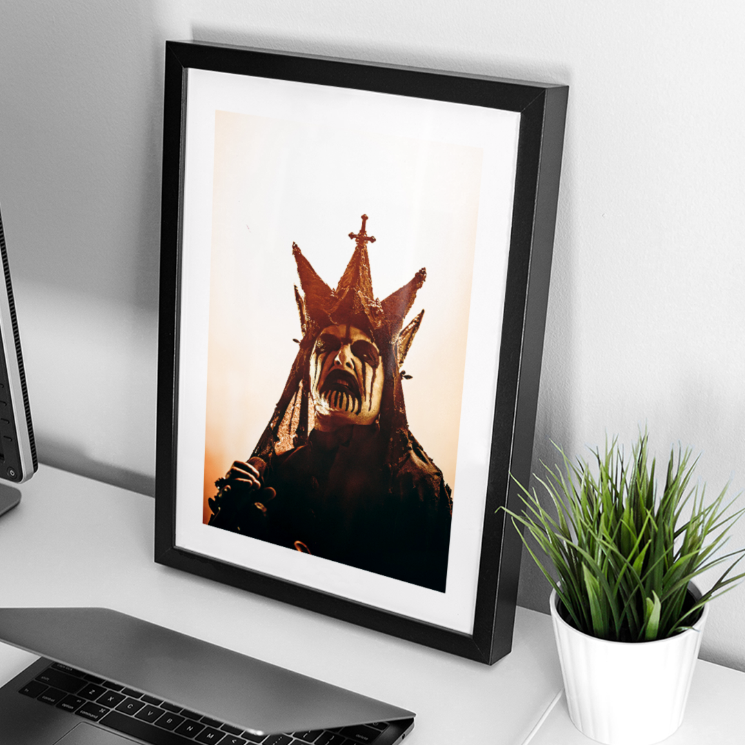 Impreso y enmarcado con acabados profesionales, este registro inmortaliza la fuerza, el misticismo y la intensidad de un show que no solo repasó la leyenda de Mercyful Fate, sino que también reafirmó su sitial como uno de los pilares indiscutidos de la historia del heavy metal.