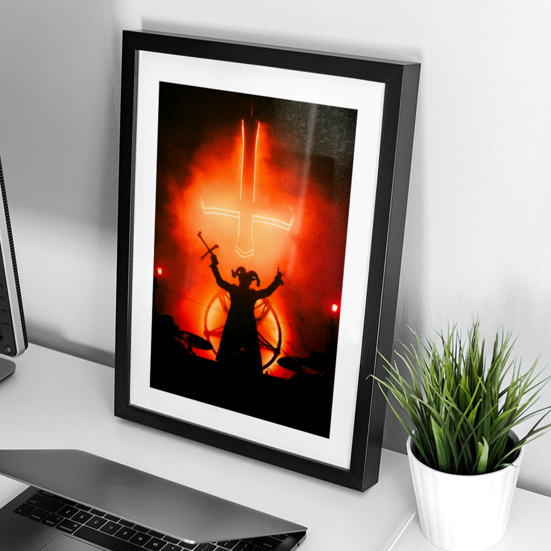 Impreso y enmarcado con acabados profesionales, este registro inmortaliza la fuerza, el misticismo y la intensidad de un show que no solo repasó la leyenda de Mercyful Fate, sino que también reafirmó su sitial como uno de los pilares indiscutidos de la historia del heavy metal.
