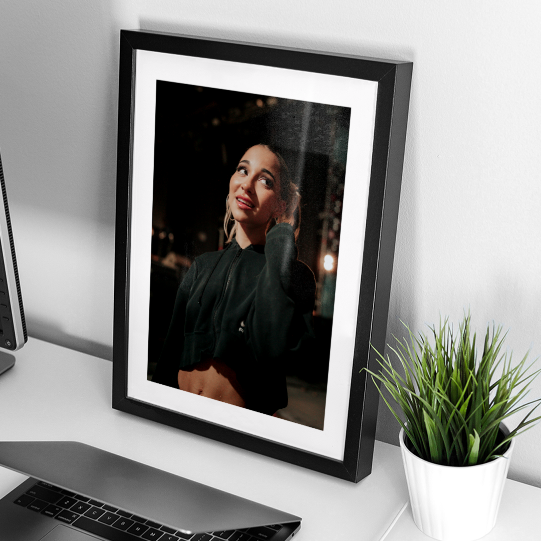Impreso en alta definición y enmarcado con acabados profesionales, este retrato inmortaliza la esencia de una de las grandes artistas nuevas de la música chilena.
