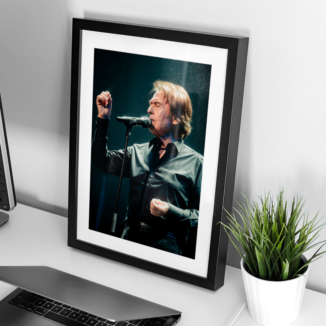 Impreso en alta definición y enmarcado con acabados profesionales, este retrato inmortaliza a Raphael en un momento de gloria, capturando la grandeza de un ícono que sigue escribiendo su propia leyenda en cada presentación.