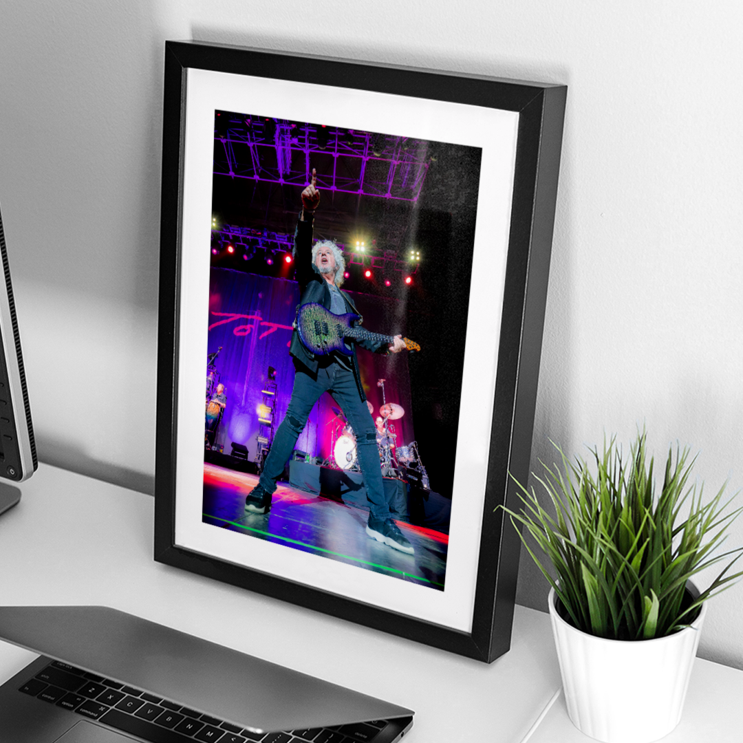 Impreso y enmarcado con acabados profesionales, este cuadro captura a Steve Lukather en pleno dominio de su arte, un homenaje a la leyenda viva de Toto y a la historia del rock.